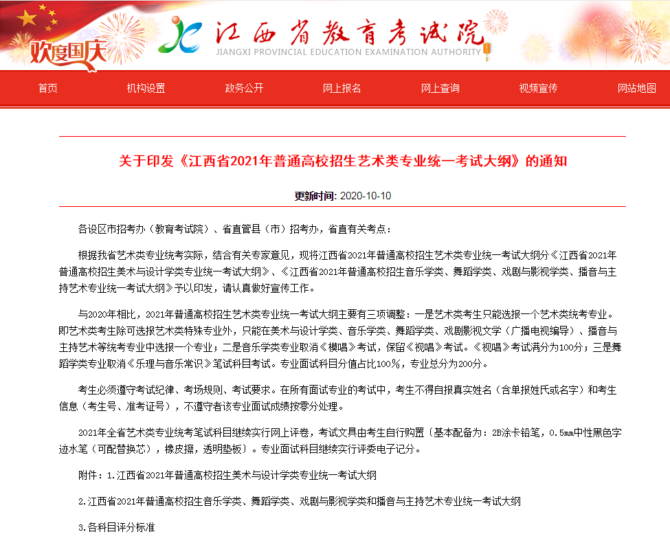 本文标题:2021江西省艺考考试大纲大变 评分标准有细微变动