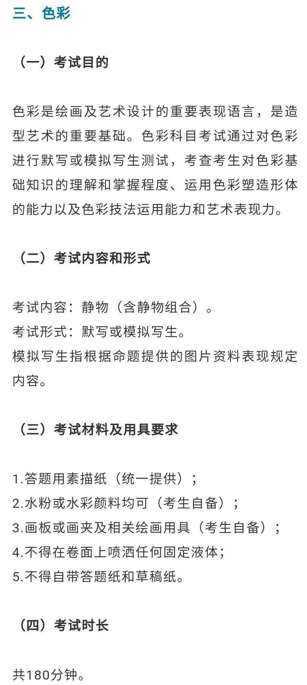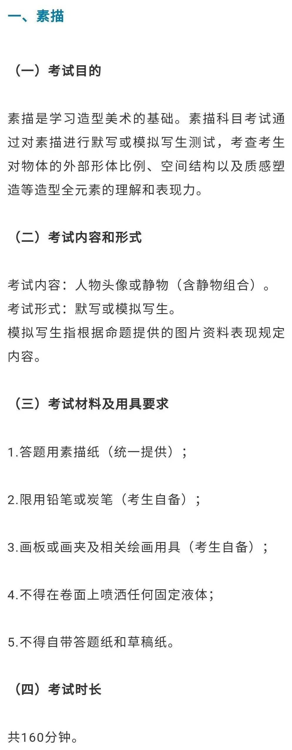 与2020年相比,2021年普通高校招生艺术类专业统一考试大纲主要有三项调整: