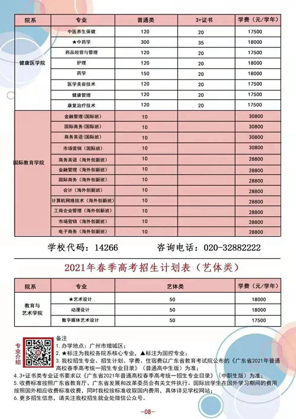 以上就是东南教育网整理的2021年广州华商职业学院春季高考招生计划相关内容,想要了解更多信息,敬请查阅东南教育网。