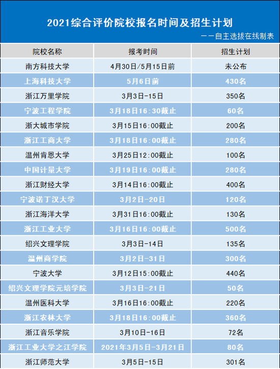 以上就是东南教育网整理的2021年综合评价院校报名时间及招生计划公布相关内容,想要了解更多信息,敬请查阅东南教育网。