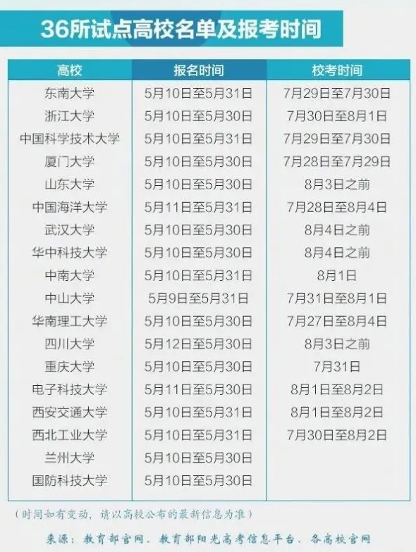 以上时间安排为2020年强基计划时间安排,由于今年高考延迟了一个月,所以明年的时间安排以教育部最新通知为准。