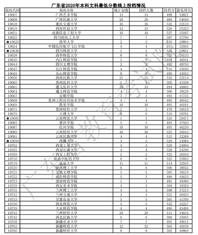 本文标题:2020广东本科普通批文理类投档分数线及计划数与投档人数一览表