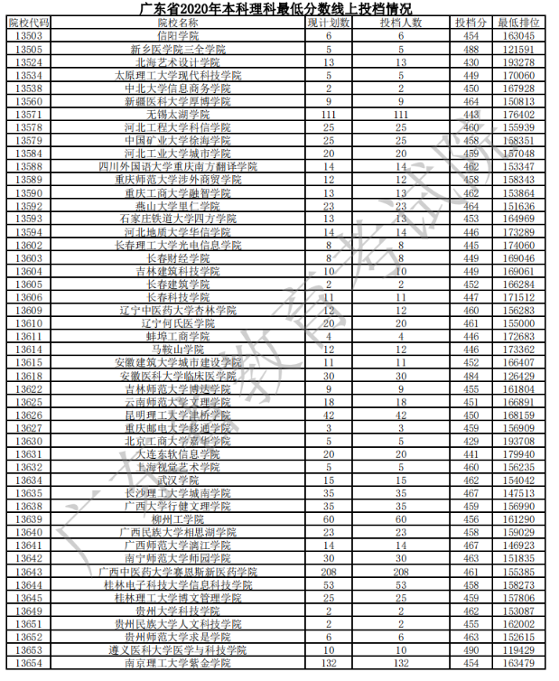 本文标题:2020广东本科普通批次理科投档分数线及计划数与投档人数一览表