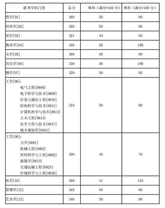 湖南大学2021年硕士研究生招生考试考生进入复试的初试成绩基本要求