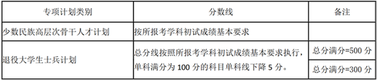 三、专项计划考生的初试成绩基本要求