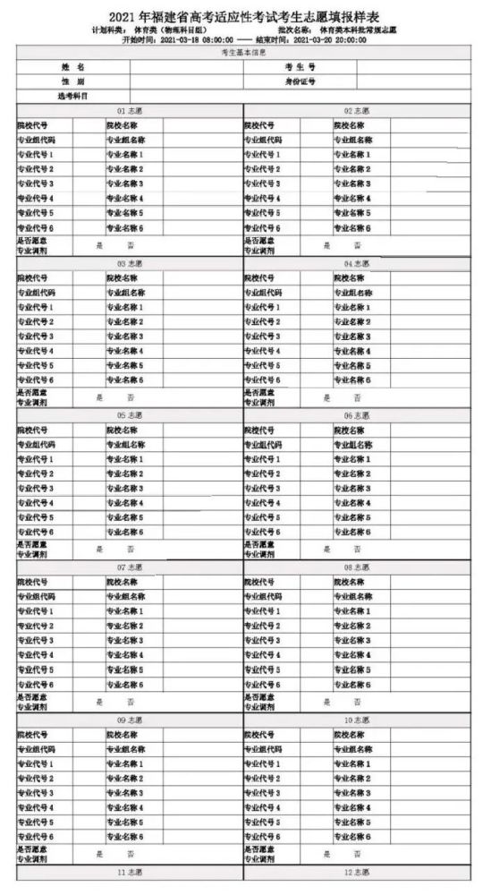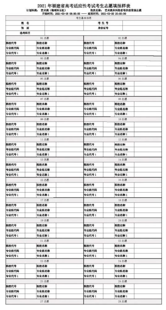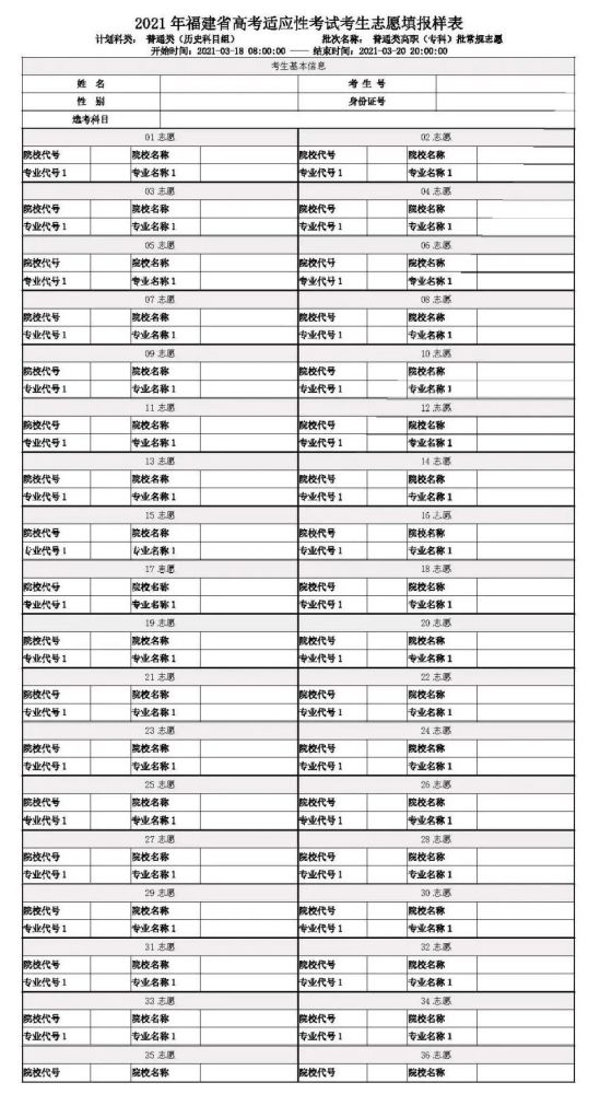 本文标题:2021年福建新高考模拟填报志愿时间及志愿填报样本
