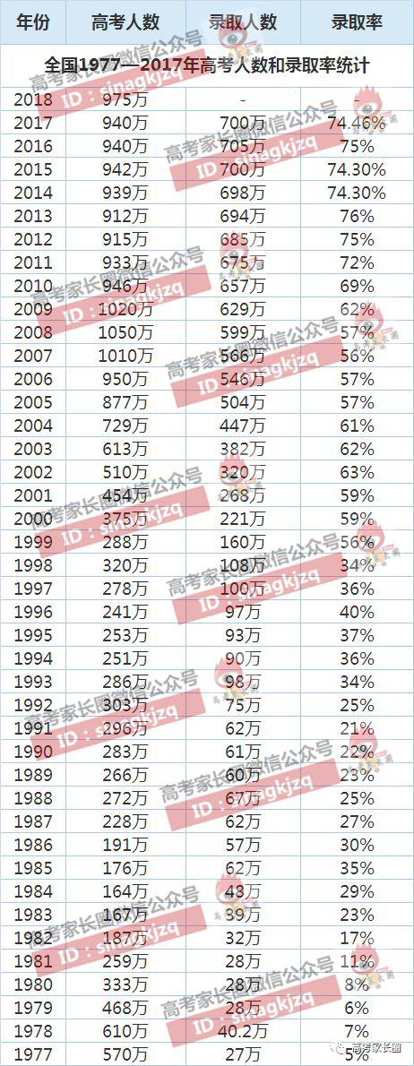 1977-2017年高考录取率
