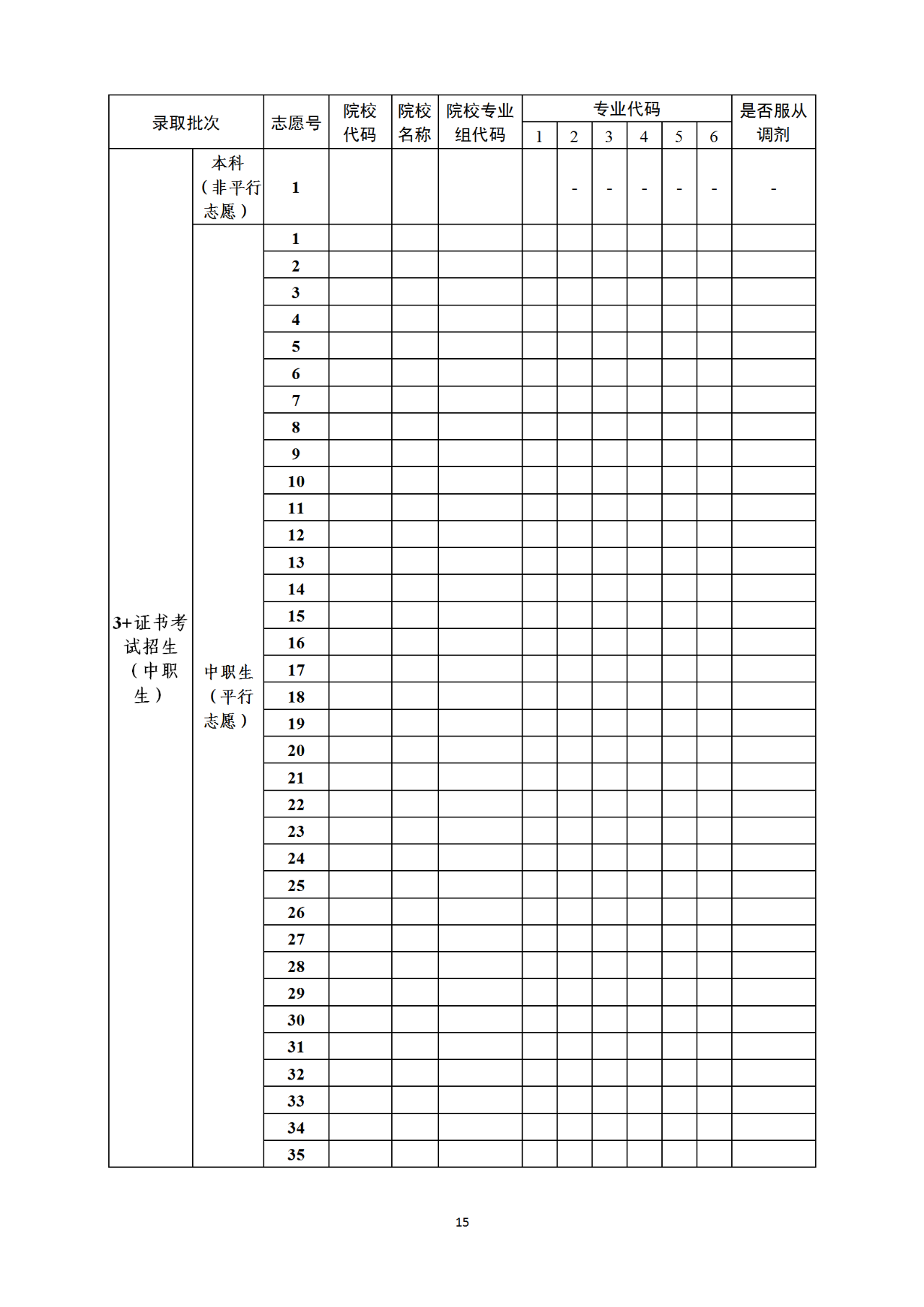 (二)“3+证书考试招生”批次及志愿设置。“3+证书考试”分本科、高职(专科)两个批次,两个批次同时填报志愿。