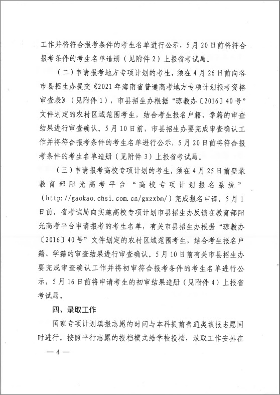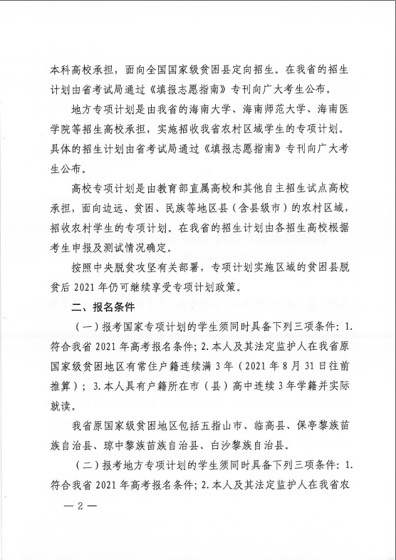 本文标题:2021年海南重点高校在琼实施专项计划工作安排
