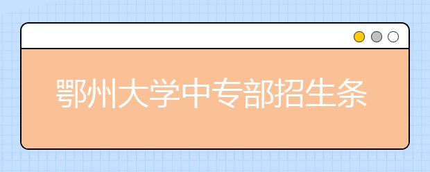 答案 鄂州大学中专部招生条件:1、应往届初、高中毕业生和社会青年,不受年龄限制。2、五官端正,形象气质佳。3、身体健康,无传染病,无重大病史,无精神病史。