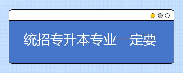 答案 统招专升本专业不一定要对口,原则上考生是可以跨专业报考的,可以选择与原专业相同或相近的专业。专升本考试是指专科层次学生进入本科层次阶段学习的选拔考试,是中国大陆教育体制大专层次学生升入本科院校的考试制度。