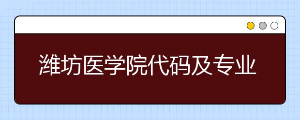 答案 潍坊医学院代码是10438,专业代码:050201英语、071002生物技术、071102应用心理学、071201统计学、082601生物医学工程、082702食品质量与安全、100701药学等专业。