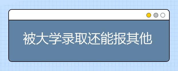 答案 被大学录取不能报其他大学。被大学录取后,就代表你的电子档案已经被该大学调走了,其他学校是不可能再录取你的。除非那所大学愿意把你的档案退回来,而且是在你填报志愿来得及的情况下。