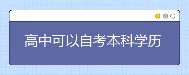 答案 高中不可以自考本科学历。在没有大专文凭的情况下是申请不了自考本科毕业的,而申请本科时,大专毕业证必须是国家承认学历的文凭(如成人高考、网络教育、电大)。