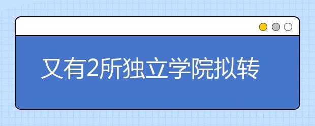 今天,东南教育网小编为大家带来了又有2所独立学院拟转设!,希望能帮助到大家,一起来看看吧!