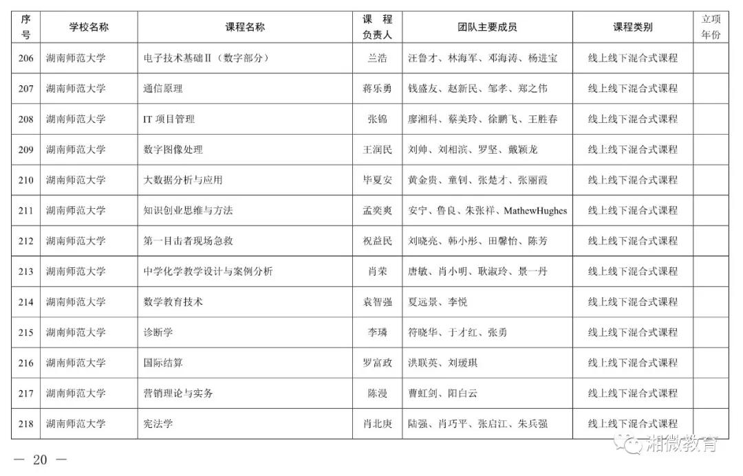 湖南省2020年一流本科课程(非线下)认定名单