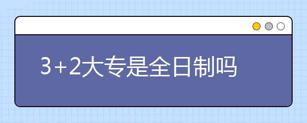 3+2大专是全日制。3+2大专是中专院校和大专院校一起合办的大专。要在中专完成3年的学业,再到合作的学校完成2年课程,取得大专毕业证。前三年是根据中专的收费,后两年根据大专的收费标准。大专毕业后也是可以继续教育,深造本科学历。 更多高考资讯尽在东南教育网https://www.30gk.com/