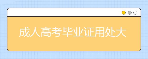 用处大不大还要看个人的需求。如果你想考公务员、评职称、求职工作、成人高考的毕业证都是可以的,它是经教育部电子注册,国家承认的学历,受到社会的认可的,在学信网都是可以查询的到的。 更多高考资讯尽在东南教育网https://www.30gk.com/