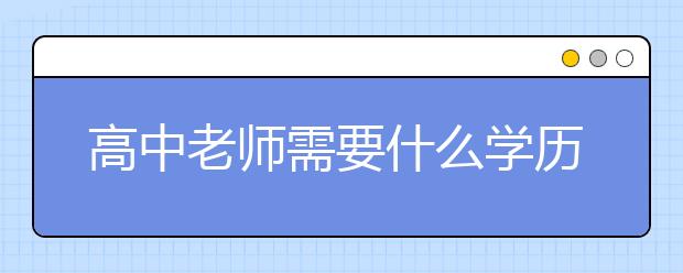 一般来说,高中老师只需要本科学历就可以了。但,也有很多级别高一点的高中会要求老师是硕士或者研究生毕业才行。而且,学历越高被录取的可能性越大。 更多高考资讯尽在东南教育网https://www.30gk.com/