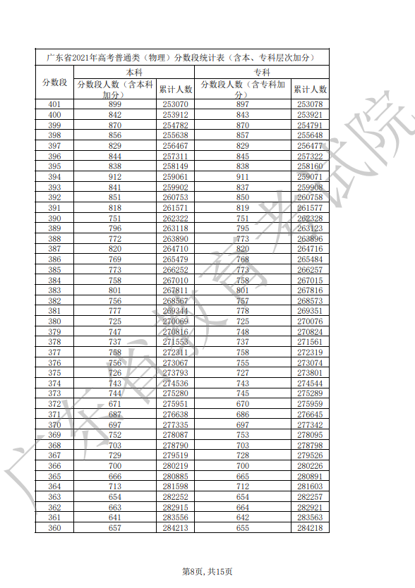 以上,就是东南教育网小编给大家带来的2021年广东省高考普通类(物理)分数段统计表全部内容,希望对大家有所帮助!