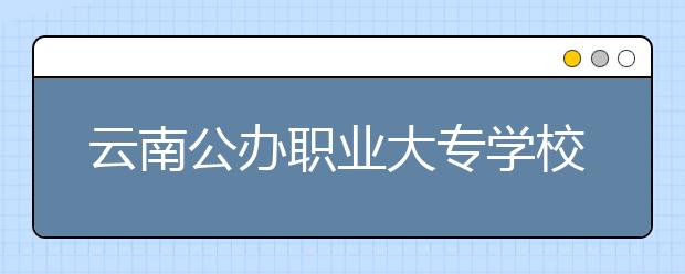 云南省公办的 职业 大专院校有很多,如公安消防部队 高等 专科 学校 、昆明冶金高等专科学校、云南国土资源职业 学院 、云南交通职业技术学院、昆明工业职业技术学院等。 更多高考资讯尽在东南教育网https://www.30gk.com/
