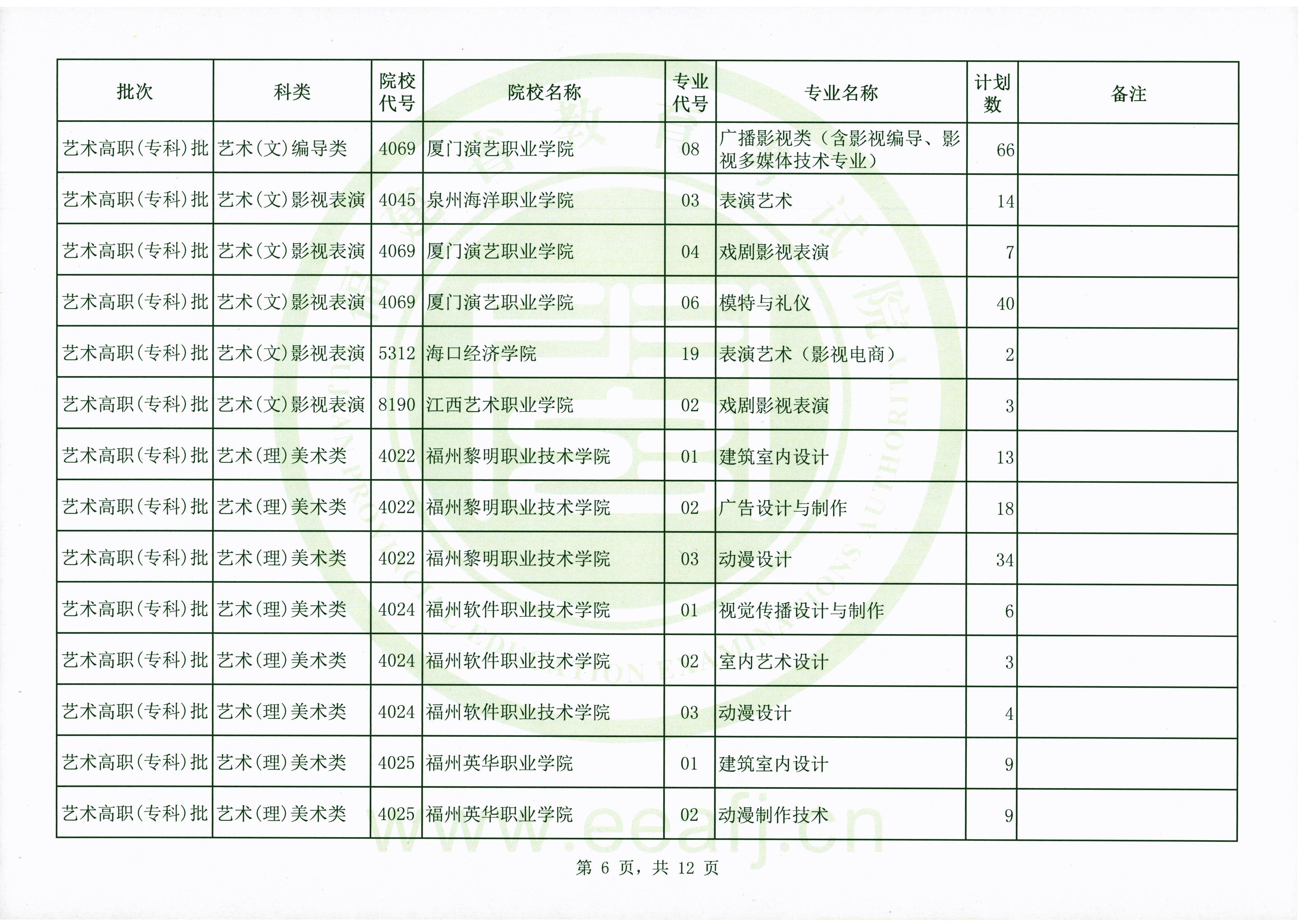 福建2020高考艺术类专科批征集志愿招生计划一览