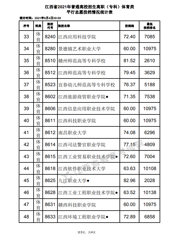附件:2021年江西省普通高校招生高职(专科)体育类平行志愿投档情况统计表