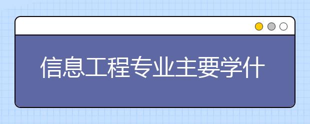 高考,是每位学子求学路上往上攀爬的必经之路。信心来自于实力,实力来自于勤奋。然而高考成功除了努力学习之外,及时掌握新的高考信息,以及不断变化的高考政策,也是很重要的。其中信息工程专业主要学什么 未来从事什么工作,就受到很多考生和家长关注。今天东南教育网小编整理了信息工程专业主要学什么 未来从事什么工作相关信息,希望在这方面能够更好的帮助到考生及家长。