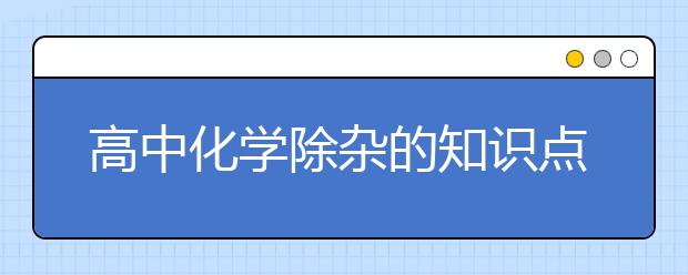 以上,就是东南教育网小编给大家带来的高中化学除杂的知识点全部内容,希望对大家有所帮助!
