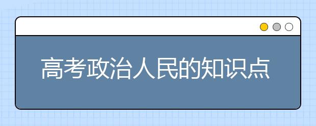 高考,是每位学子求学路上往上攀爬的必经之路。信心来自于实力,实力来自于勤奋。然而高考成功除了努力学习之外,及时掌握新的高考信息,以及不断变化的高考政策,也是很重要的。其中高考政治人民的知识点总结,就受到很多考生和家长关注。今天东南教育网小编整理了高考政治人民的知识点总结相关信息,希望在这方面能够更好的帮助到考生及家长。