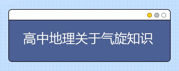 高考,是每位学子求学路上往上攀爬的必经之路。信心来自于实力,实力来自于勤奋。然而高考成功除了努力学习之外,及时掌握新的高考信息,以及不断变化的高考政策,也是很重要的。其中高中地理关于气旋知识点,就受到很多考生和家长关注。今天东南教育网小编整理了高中地理关于气旋知识点相关信息,希望在这方面能够更好的帮助到考生及家长。