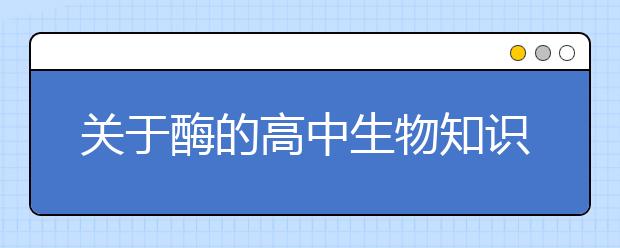 高考,是每位学子求学路上往上攀爬的必经之路。信心来自于实力,实力来自于勤奋。然而高考成功除了努力学习之外,及时掌握新的高考信息,以及不断变化的高考政策,也是很重要的。其中关于酶的高中生物知识点,就受到很多考生和家长关注。今天东南教育网小编整理了关于酶的高中生物知识点相关信息,希望在这方面能够更好的帮助到考生及家长。