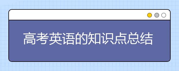知识的宽度、厚度和精度决定人的成熟度。每一个人比别人成功,只不过是多学了一点知识,多用了一点心而已;下面小编给大家分享一些高考英语知识点总结,希望能够帮助大家,欢迎阅读!
