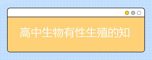 生物可以将遗传物质复制,通过自我分裂生殖(无性生殖)或有性生殖,交由下一代繁殖下去以避免灭绝,这是类生命现象的基础。下面小编给大家分享一些高中生物有性生殖的知识点,希望能够帮助大家,欢迎阅读!