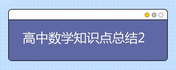学习知识容易,转化成为能力很难;提出问题容易,得到圆满答复很难;点评别人容易,身临其境去做很难;指责同事容易,正确评价自己很难。下面小编给大家分享一些高中数学知识点总结,希望能够帮助大家,欢迎阅读!