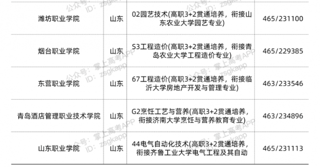 从专科总体的报考情况来看,“高职3+2贯通培养”类型的相关专业牢牢占据着专科批高分专业的第一梯队,这15所“双高”院校也不例外,最高分专业均与“3+2”相关,分数也都在462分以上,比山东省本科线(一段线)还要高了18分。其中分数最高的专业,也是15所“双高”院校中唯一一所高水平学校建设单位A档院校----山东商业职业技术学院中的大数据与会计专业,淄博职业学院与济南职业学院的“大数据与会计”专业分列二、三位。对于这个新设置的专科专业,大数据与会计专业旨在培养金融与计算机行业的复合型人才,受到了众多考生及家长的热切关注。