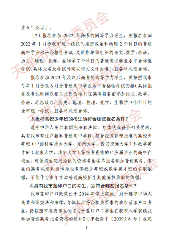 天津《市招委关于印发天津市普通高考报名有关事项的通知》的解读