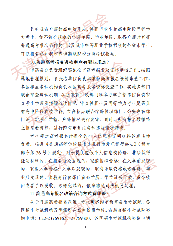 2021年市招委关于天津市普通高考报名有关事项的通知