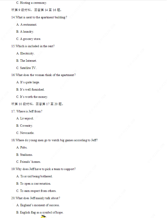 2020江西高考英语试题及答案