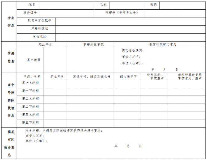 3.此表当地审核通过后,由旗县(市、区)招办通过平台上传。