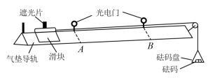 (4)令滑块在砝码和砝码盘的拉动下从左边开始运动,和计算机连接的光电门能测量出遮光片经过A、B两处的光电门的遮光时间Δt1、Δt2及遮光片从A运动到B所用的时间t12;