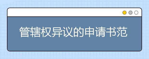 在 法律 不断完善的社会中, 申请 书 与 我 们的生活息息相关,我们在写申请书的 时候 要 注意态度要诚恳、朴实。 那么 大家知道正规的申请书怎么写吗?为了让您在写的过程中更加简单方便,一起来参考是怎么写的吧!下面给大家分享关于管辖权异议的申请书,欢迎 阅读 !