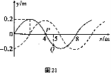 的波形图相同,p点沿y轴负方向运动,故C错误。经过0.4s,p完成半个周期的振动,经过的路程为