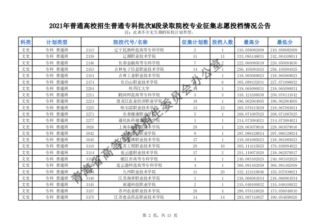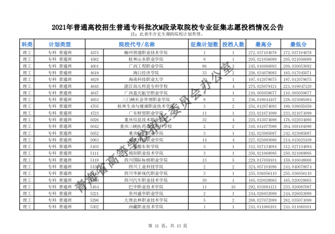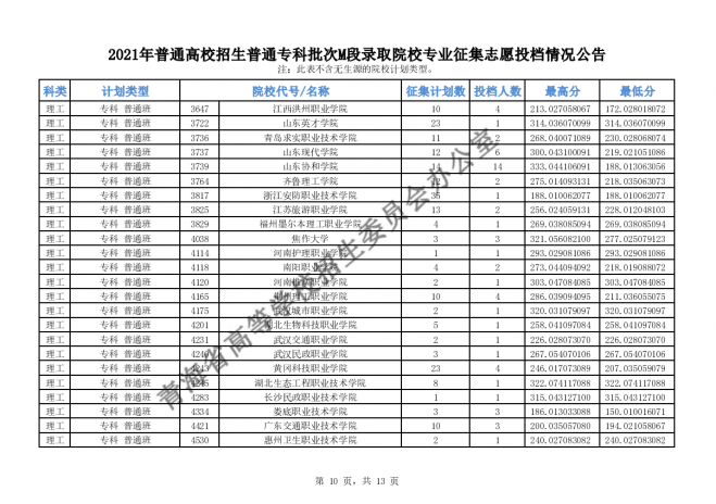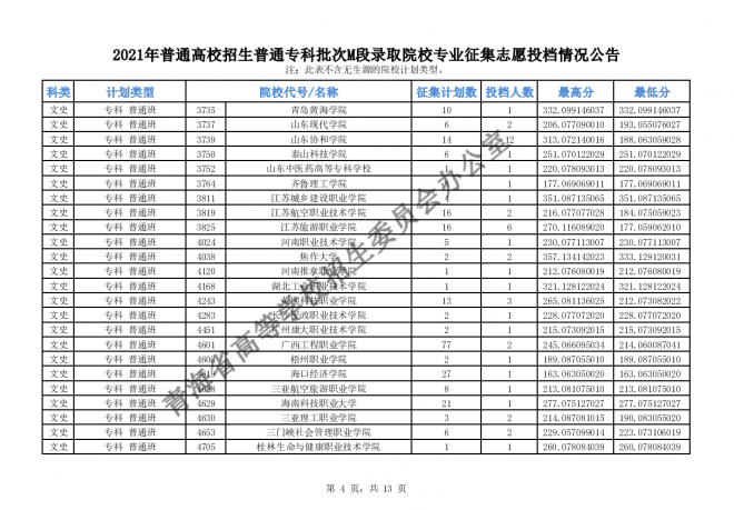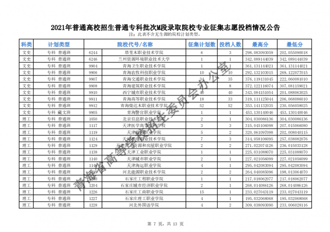 2021年青海普通高校招生普通专科批次M段录取院校专业征集志愿投档情况公告