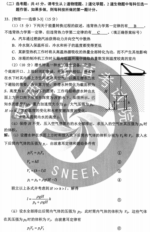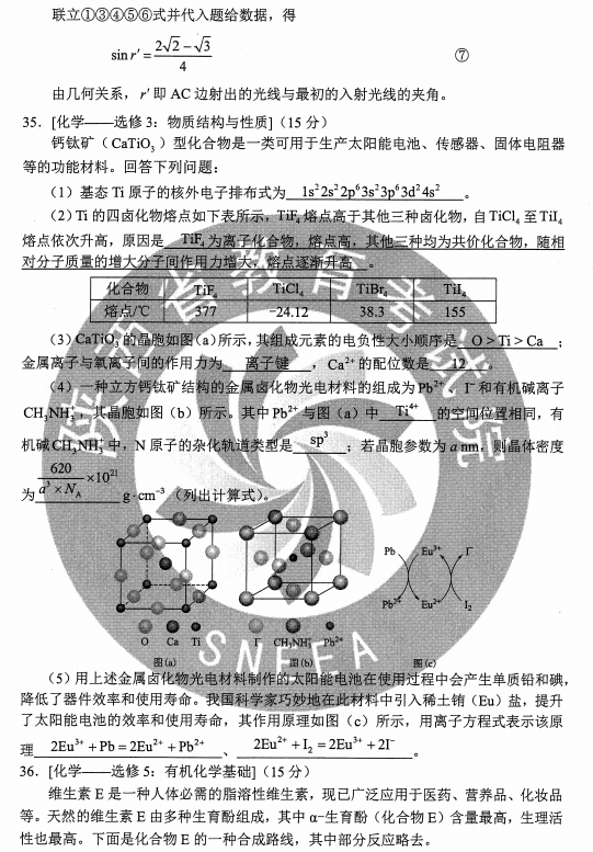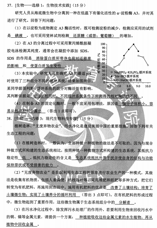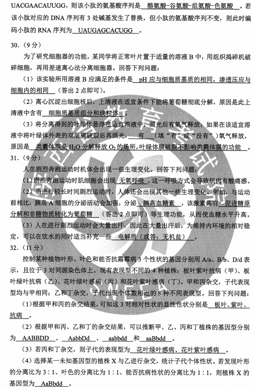 2020甘肃高考理综试题及答案解析