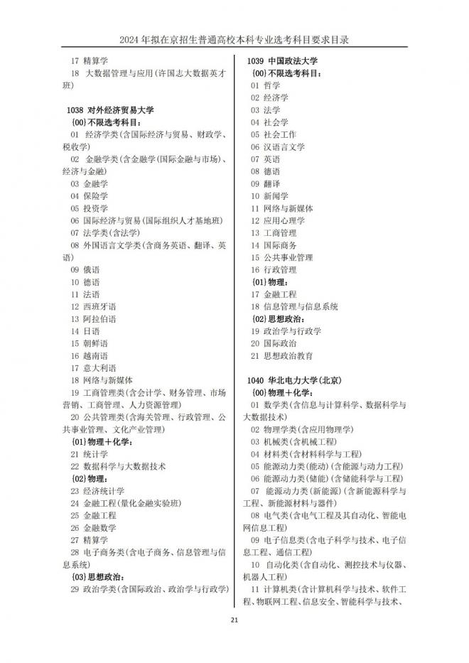 本文标题:2024年拟在北京招生普通高校本科专业选考科目要求目录