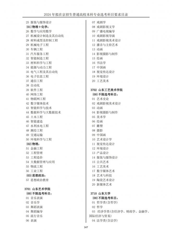 附件:2024年拟在京招生普通高校本科专业选考科目要求目录