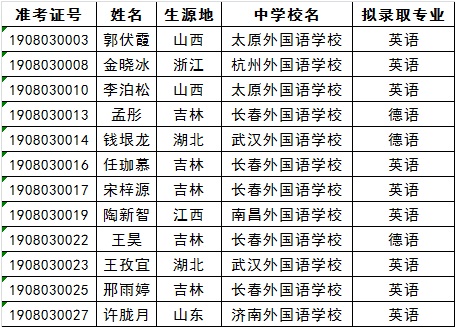 以下为北京科技大学2019年外语类保送生拟录取公示名单,公示截至1月28日。同时考生可登录网上报名系统查询,请登录“网上报名”系统,点击左侧“考试结果查询”进行查看。我校不再提供其它查询方式。