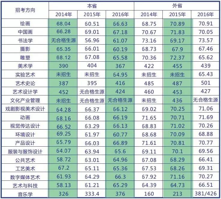 (2)史论类专业(艺术史论、美术学、艺术设计学):写作能力测试合格、文化课成绩达到我院规定要求,按照文化课成绩从高分到低分排序择优录取,原则上文化课成绩应达到考生所在省二本文理科最低控制分数线。