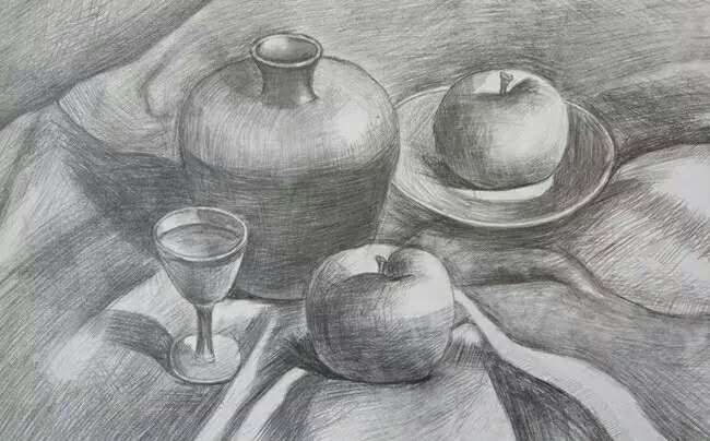 4.画面色调对比不够明朗,素描关系基本准确,表现缺乏生动,形体刻画能力不够,存在某些缺点,画面整体效果一般。